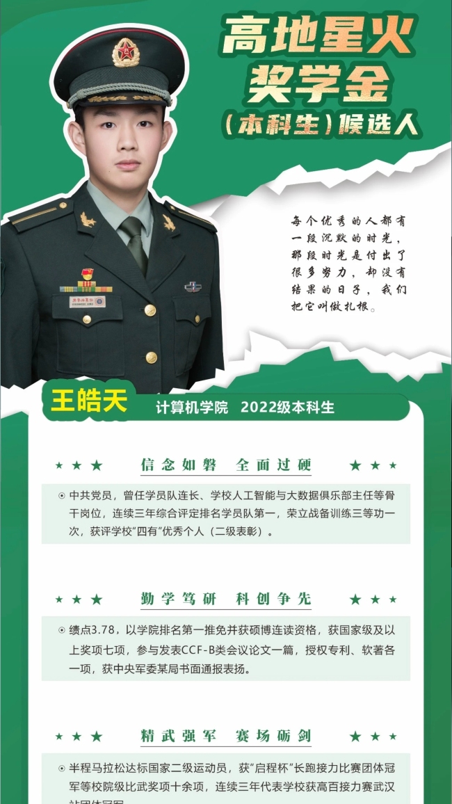 之志正在迷彩服下交汇当科技之光与报国,面向异日沙场时淬炼出的便是,与最亮的矛头最深的底气。正红炉火,未竟淬变,钢已成而精。