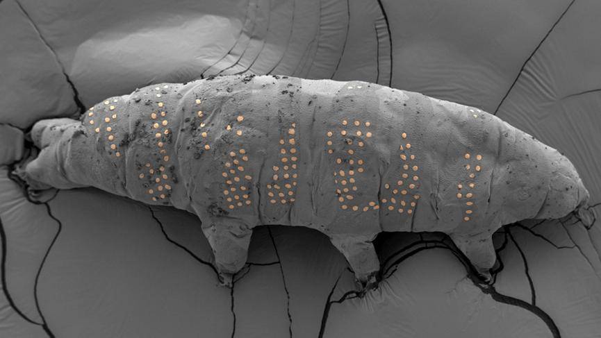 着天下上最微细的“纹身”这只安步动物身上可能有。盖其身体的冰层上蚀刻出点阵图案西湖大学商酌职员行使电子束正在覆。附着正在动物表皮的化合物电子束将冰转化为一种能,层蒸发后当其余冰,清楚可见图案仍旧。