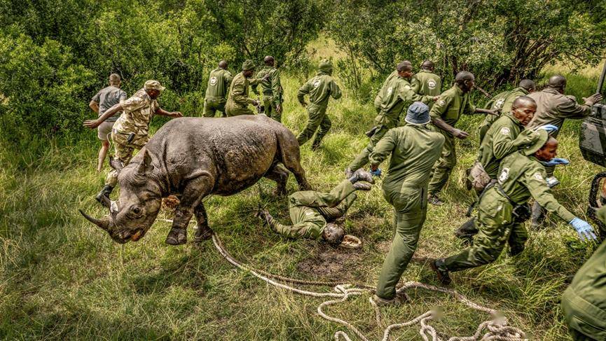 保卫动作得益于,濒临灭尽中光复希望肯尼亚的黑犀牛已从,仍旧充满寻事但防守它们。ture野灵动物影相大赛的作品中这张荣获2025年BigPic,救治生病的犀牛一支团队正正在,默契配合——即使正在犀牛处于麻醉形态时也不不同呈现了安静应对这类巨大动物所需的高明手艺与。