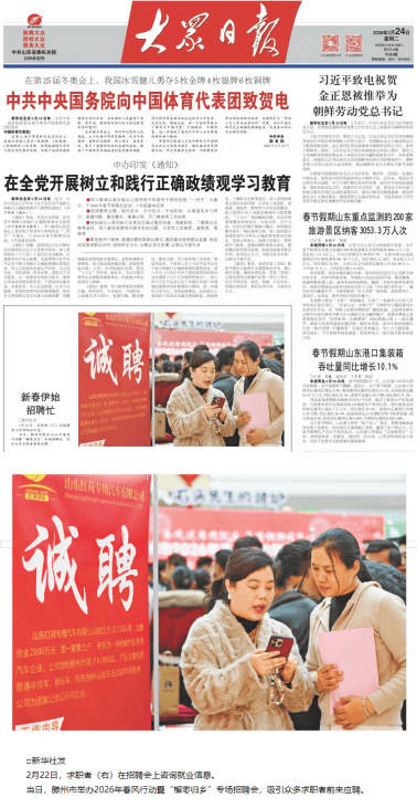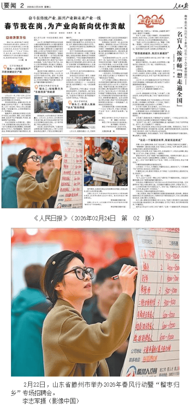 2月24日2026年,风活动暨“榴枣归乡”专场聘请会营谋《黎民日报》要闻2版刊发枣庄滕州春。