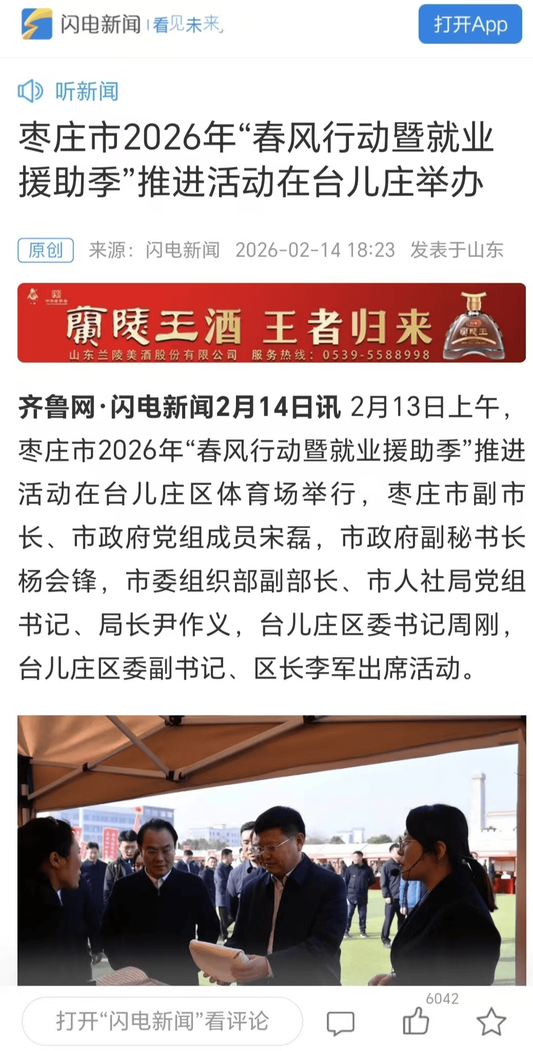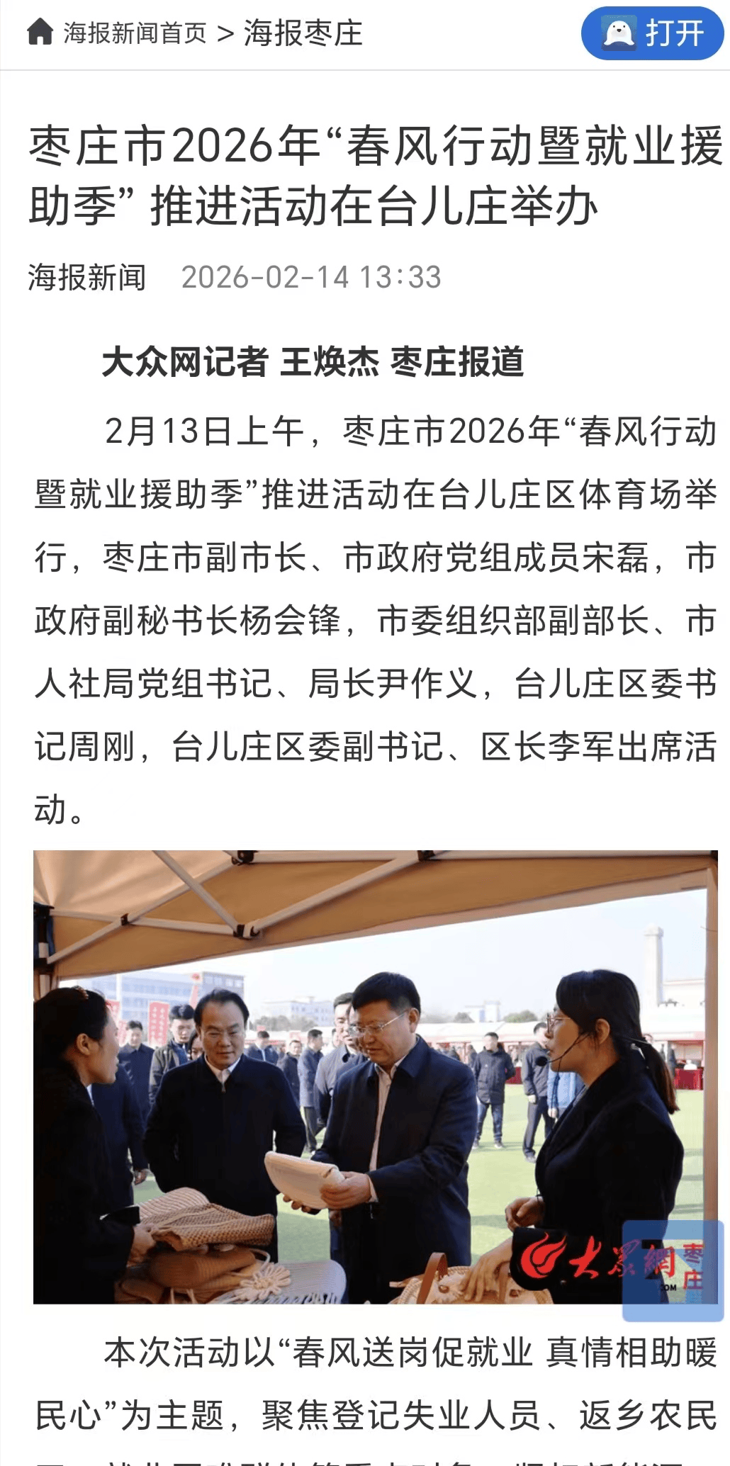 2月14日2026年,东风活动暨就业援帮季”促进营谋正在台儿庄举办闪电音讯、海报音讯颁布枣庄市2026年“。